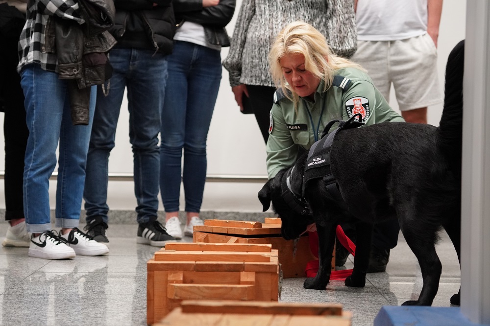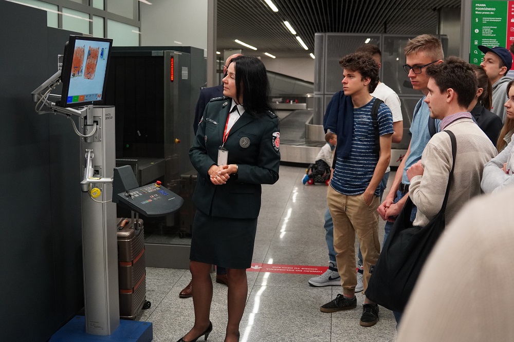 Pierwsze spotkanie odbyło się 16 maja na lotnisku w Balicach. Nasi funkcjonariusze opowiedzieli o KAS z perspektywy Służby Celno-Skarbowej oraz zwalczania przestępczości ekonomicznej. W trakcie zajęć Małgorzata Woźniak-Słota, kierownik zmiany, przedstawiła najważniejsze założenia Konwencji Waszyngtońskiej (CITES), dotyczącej ochrony gatunkowej dziko występującej flory i fauny, której grozi wyginięcie. Studenci zapoznali się z przykładami najczęściej przemycanych okazów i omówili najciekawsze ujawnienia. Drugą część zajęć na lotnisku poświęcono kontroli celno-skarbowej. Studenci poznali też Annę Miłosz, kierownika Oddziału Celnego Port Lotniczy Kraków-Balice. Wojciech Prawdzic-Lewandowski, zastępca naczelnika Urzędu Celno-Skarbowego ds. kontroli celno-skarbowej, opowiedział, w jaki sposób typuje się podmioty do przeprowadzenia kontroli oraz przedstawił jej przebieg. Po zajęciach merytorycznych przyszła kolej na zwiedzanie Centrum Edukacji Lotniczej oraz oddziału celnego. Studenci mieli okazję zobaczyć działanie skanera bagażu i spróbować swoich sił w odczytywaniu obrazu. Funkcjonariuszka Jolanta Plewa wraz z czworonożną funkcjonariuszka Reją zaprezentowały, do czego wykorzystujemy zdolności węchowe psów.