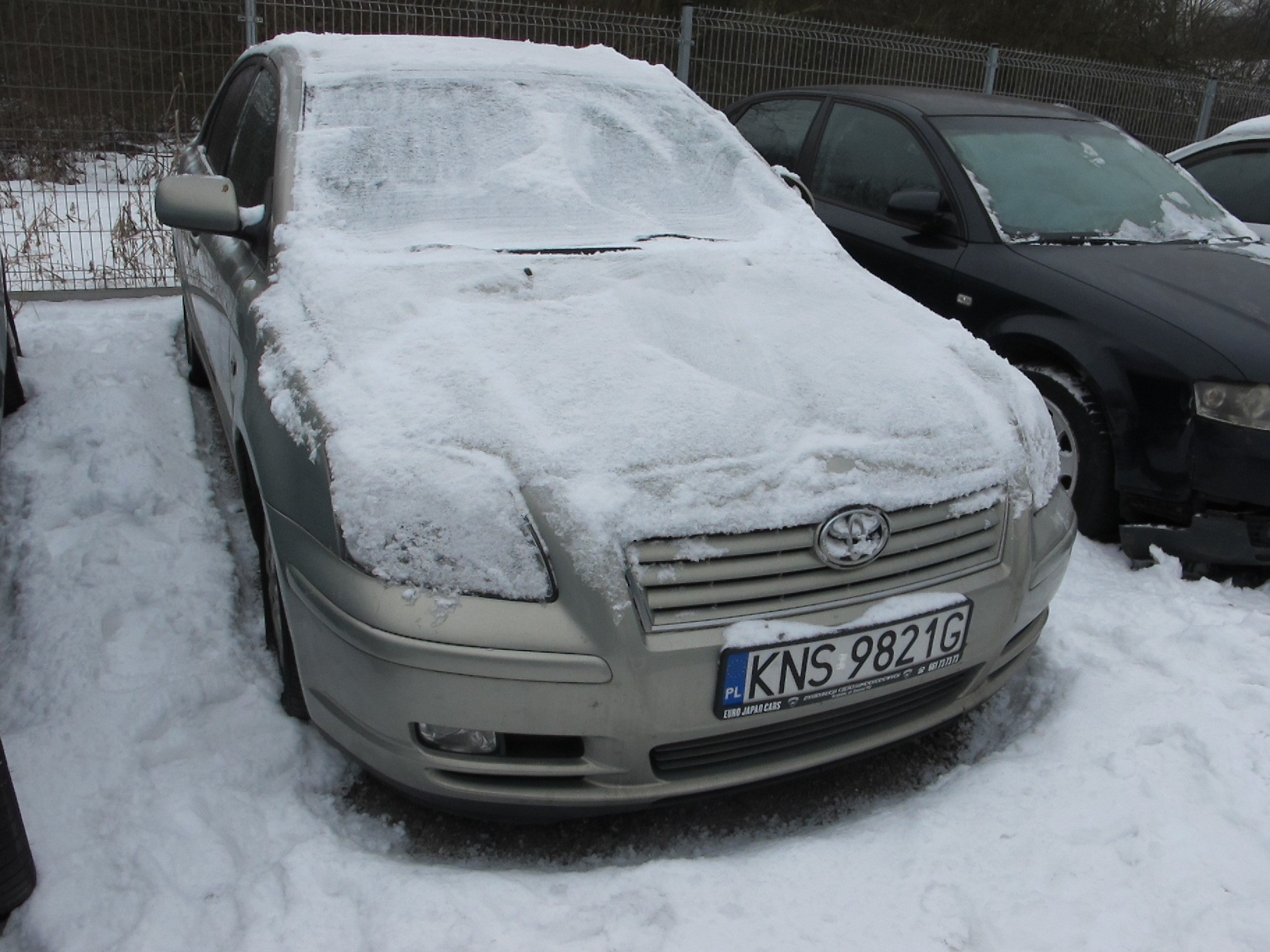 Toyota Avensis pojemność silnika 1794,00 cm³, rok produkcji 2004, prawą tylną lapmpę i zderzak srebrnego samochodu ;