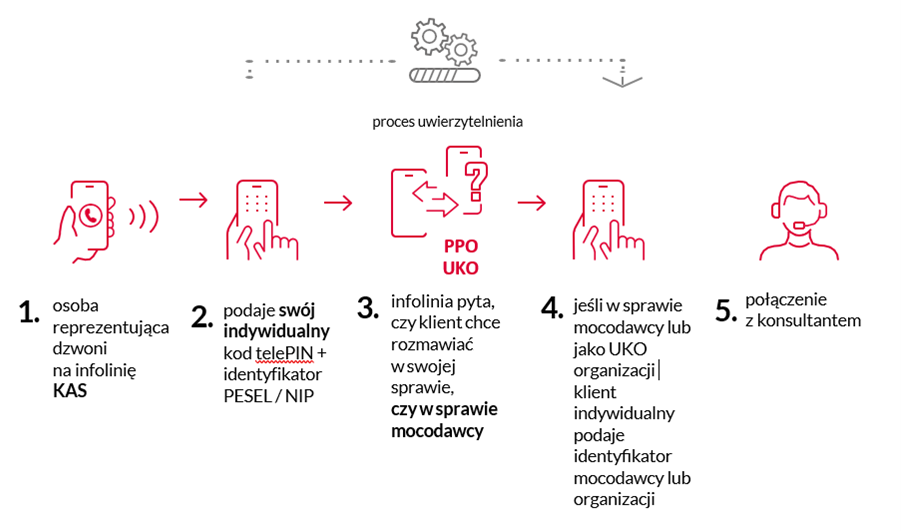 W każdym przypadku proces uwierzytelnienia za pomocą telePIN jest realizowany automatycznie przez system, a potwierdzenie tożsamości odbywa się bez udziału pracownika KAS.