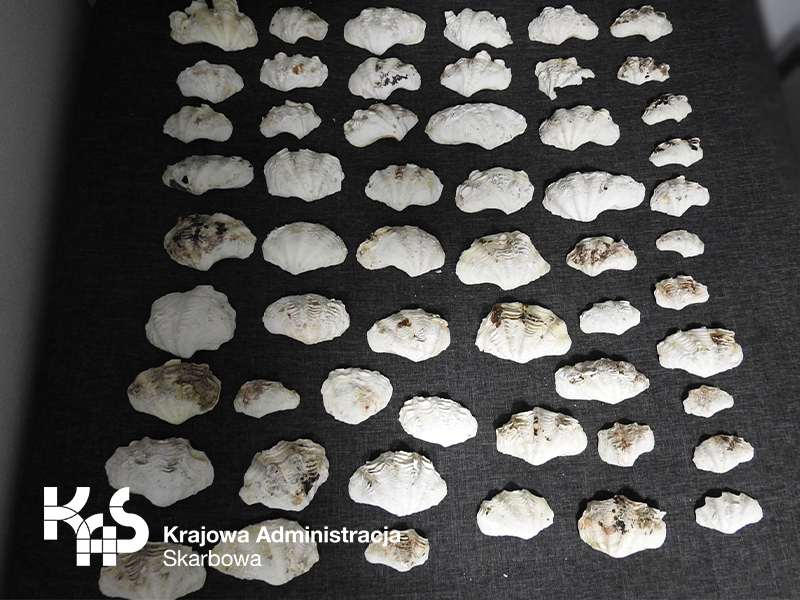 - 56 sztuk muszli przydaczni ujawnili w bagażu podróżnej funkcjonariusze