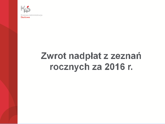 Aktualnie realizujemy zwroty nadpłat z zeznań złożonych za rok 2016: